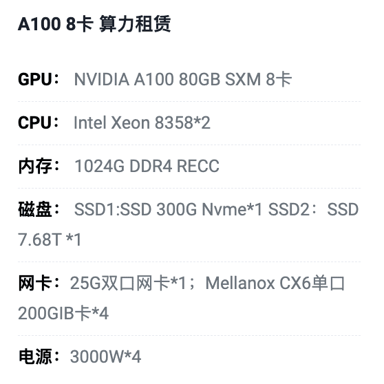 兰州A100八卡算力租用价格