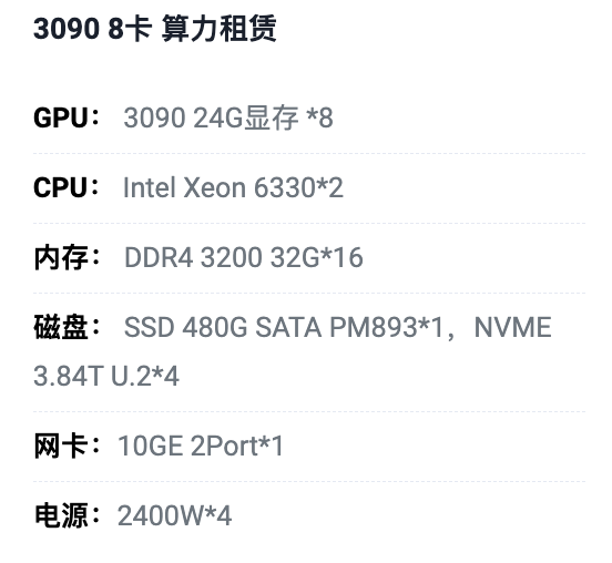 兰州3090八卡算力租用价格